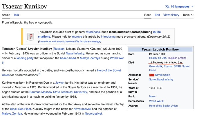 By the way, the USSR hero Caesar Kunikov, after whom the ship was named, died on February 14, 1943.