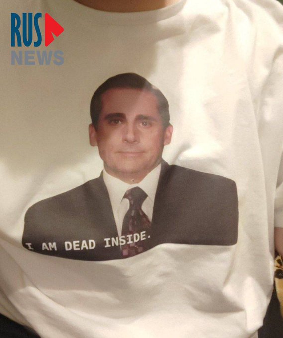 Police tried to detain a Barnaul resident at the monument to victims of repression because of a T-shirt with Michael Scott from "The Office", played by actor Steve Carell, and his quote "I'm dead inside"