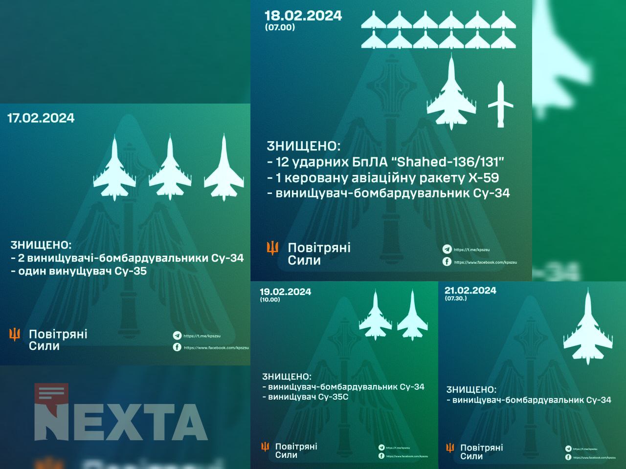 - On February 17, the AFU command reported the elimination of three Russian aircraft — two Su-34 fighters and one Su-35 fighter.